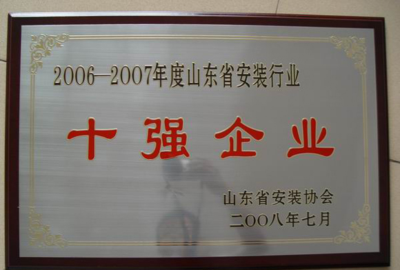 集團公司榮獲“2006-2007年度山東省安裝行業十強企業”稱號 近日,山東省安裝協會發布文件,公布2006-2007年度山東省安裝行業十強企業和九家優秀企業。集團公司榮膺十強企業。安裝行業十強企業和優秀企業的評選是根據《山東省優秀暨十強安裝企業評選辦法》,經專家評審、會長辦公會研究決定的。榮膺該項榮譽也是集團公司總體實力的反映。(08.09.16) |