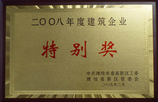 濰坊昌大建設(shè)集團(tuán)被高新區(qū)黨工委和管委會(huì)授予建筑企業(yè)特別獎(jiǎng)