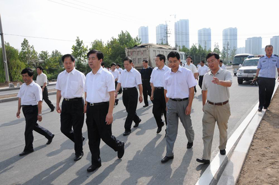 9月4日上午,濰坊市委副書記、市長許立全在副市長劉偉和建設局局長李廣東等陪同下視察了玄武街改造工程。集團公司董事長徐鵬強陪同許市長一行在現場實地視察并介紹工程有關情況。 視察中,許市長認真聽取工程介紹,仔細察看瀝青罩面、花壇緣石鑲貼、路面雨污水口與路面交接等細部工程處理情況,對工程的精細化管理給予充分肯定和較高評價;在白浪河橋工程現場,許市長實地察看了第六分公司正在進行的降水施工法,對工程進展情況表示了滿意。看到局部地段因拆遷影響人行道工程進展時,許市長要求相關部門加快工作進度,積極為施工單位創造條件,早日修好這條縱貫東西、五區連橫、商業娛樂集聚的交通要道,造福濰坊人民。 ![]()