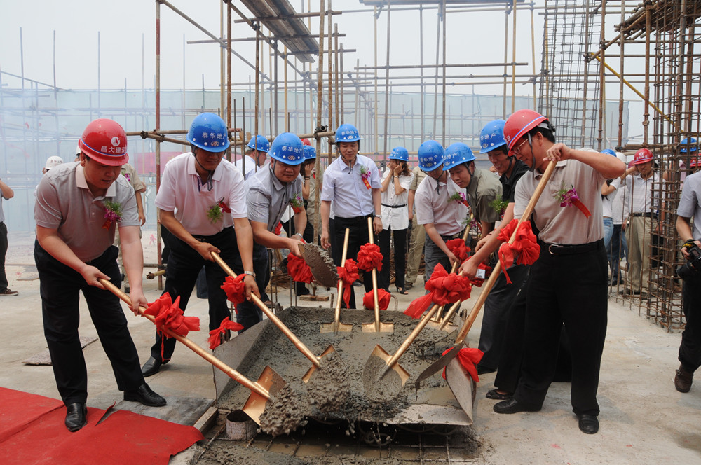 6月16日上午11時16分,由第二分公司承建的泰華城•榮觀華府工程舉行了主體封頂儀式。集團公司董事長徐鵬強、總經理朱九洲,建設單位泰華集團董事長劉云江,監(jiān)理單位董事長曹金彩等領導出席封頂儀式并為泰華城•榮觀華府工程裝填最后一車封頂砼。參加封頂儀式的還有來自建設單位、施工單位、監(jiān)理單位及參建單位的200多名代表。 泰華城•榮觀華府工程是濰坊市唯一的商業(yè)CBD項目,工程位于美麗的白浪河畔。本期項目總建筑面積216673平方米,工程基礎采用CFG復合地基,2m厚的筏板基礎,地下三層和地下二層為車庫,地下一層至四層為商業(yè),五層至二十九層為公寓。工程采用流線型設計,從空中看像游戈在白浪河中一條巨大的彩魚,從側面看像停泊在白浪河畔的一艘巨大的航母,1#東西塔樓像兩個巨大的風帆。該工程自2010年4月15日筏板基礎圖紙出具以后正式開工建設,第二分公司項目部組織人員搶工期,抓質量,保形象,克服了施工現場狹小、工程結構復雜、施工穿插組織難度大等各方面困難,歷時368天,以比原計劃工期提前26天的優(yōu)異成績封頂,同時實現優(yōu)質、安全,贏得了建設單位和監(jiān)理單位的高度稱贊。該工程的提前順利封頂,為昌大和泰華兩個集團公司以后的戰(zhàn)略合作夯實了基礎,埋設了基石,譜寫了輝章。