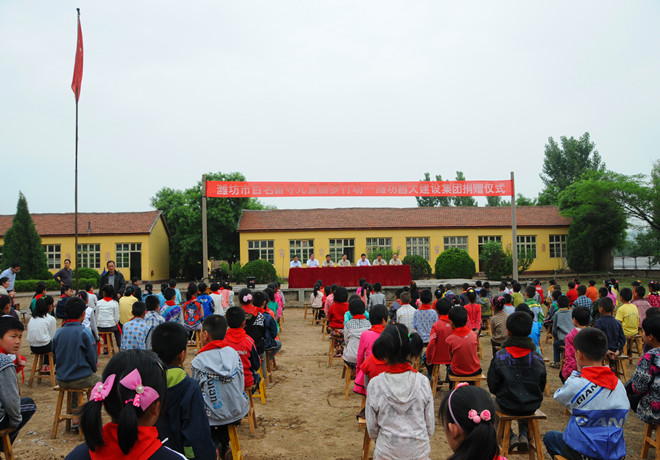 2013年5月29日上午,由裝飾分公司發起并聯合第四、第八分公司共同實施的員工為留守兒童捐建午餐食堂捐贈儀式在臨朐縣寺頭鎮春蕾小學舉行。三個捐建單位的領導班子成員和員工代表參加了捐贈活動。集團公司對員工自發組織的這項活動給予了充分肯定和積極支持,監事會主席、黨委副書記、紀委書記滕忠斌出席捐贈活動并在儀式上講話。集團公司辦公室副主任、駐臨朐幫扶工作領導小組成員兼臨朐寺頭鎮大崮東村第一書記徐良本,受捐贈春蕾小學的200多名師生參加上述活動。捐贈儀式由臨朐縣寺頭鎮黨委書記瞿志敏主持。