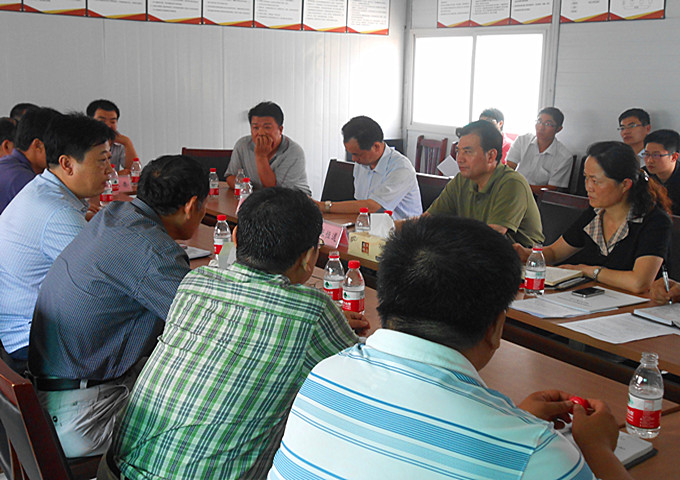在項目部會議室,張恒道聽取了施工單位、監理單位、建設單位工程建設情況匯報,對工程相關事宜進行了現場調度,以確保該工程按照計劃進行施工。濱海經濟開發區評審中心主任張樹欽、招投標中心主任王永光、規劃局副局長莊廷祥參加了調度會。
