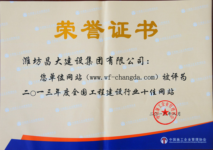 2013年8月15日至17日,中國施工企業管理協會召開年度通聯員工作會議,報告通聯年度工作,開展聯絡員通訊員交流活動,表彰優秀報刊、網站,表彰優秀聯絡員、通訊員。集團公司官方網站(www.xnqsly.com)被評為2013年度全國工程建設行業十佳網站。《昌大建設報》被評為全國工程建設行業銀頁報紙獎。