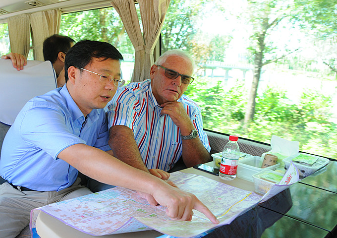19日,沃克夫婦一行先后參觀了濰坊城市規(guī)劃藝術(shù)館、北辰綠洲濕地公園、奧體公園體育場(chǎng)、會(huì)展中心、火車站南廣場(chǎng)、寶通陸號(hào)、泰和上筑、集團(tuán)新辦公樓。在城市規(guī)劃藝術(shù)館,沃克夫婦一行參觀了濰坊城市規(guī)劃沙盤、觀看了濰坊城市規(guī)劃影片,對(duì)濰坊市的基本情況有了一個(gè)整體了解;在北辰綠洲濕地公園,濰坊市規(guī)劃局副局長楊錫忠、規(guī)劃用地科科長王列生陪同參觀并介紹了北辰中央休閑區(qū)的項(xiàng)目定位、總體規(guī)劃和商業(yè)開發(fā)用地情況,沃克先生表示對(duì)該項(xiàng)目很感興趣;在火車站南廣場(chǎng)開發(fā)建設(shè)指揮部,市建設(shè)局副調(diào)研員付深遠(yuǎn)向客人介紹了火車站南廣場(chǎng)周邊地區(qū)規(guī)劃方案。