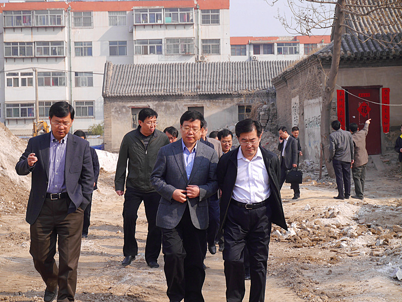 2014年3月24日上午,濰坊市人民政府副市長夏芳晨來到集團正在開發建設的城隍廟項目調研,就相關工作進行了現場調度。集團董事長徐鵬強陪同調研并匯報了工程進展情況、面臨的現實問題以及城隍廟深化改造方案等。副總經理姜建魯參加調研。
