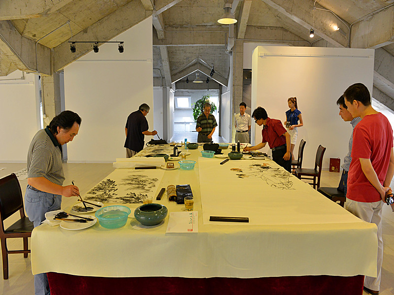 2014年7月16日上午,集團泰和公司邀請濰坊8名知名書畫家蒞臨昌大美術館舉行筆會。集團監事會主席、黨委副書記、紀委書記滕忠斌出席筆會。 筆會現場,書畫家們興致勃勃、揮毫潑墨,為昌大美術館獻寶。 昌大美術館,設置于泰和上筑會館內,融入建筑自然歸真氛圍之中,擬以組織筆會、展示集團員工書畫作品為主,兼以收藏國內外大家作品,以此彰顯昌大人“優雅做建筑”的情懷。