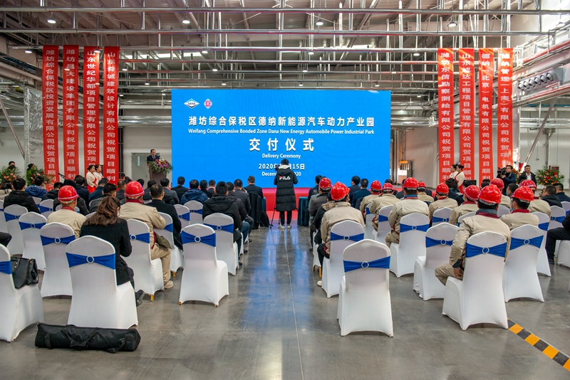 2020年12月15日上午,濰坊綜合保稅區(qū)德納新能源動力產(chǎn)業(yè)園交付儀式在項(xiàng)目現(xiàn)場舉行。集團(tuán)總經(jīng)理朱九洲出席儀式并與出席儀式的各方領(lǐng)導(dǎo)共同啟動項(xiàng)目。綜合保稅區(qū)領(lǐng)導(dǎo)和有關(guān)部門負(fù)責(zé)人朱蘭璽、張華、周國、劉珍榮、竇秉超、房偉、闞永美、徐海波,德納中國區(qū)總裁馬庫斯·金、德納亞太區(qū)市場傳訊及政府關(guān)系總監(jiān)文君竹、德納(山東)電機(jī)有限公司總經(jīng)理朱陽城等出席交付儀式。集團(tuán)二建公司、安裝公司、機(jī)施公司、三裝公司以及德納公司、威達(dá)監(jiān)理、世紀(jì)華都項(xiàng)目管理公司有關(guān)領(lǐng)導(dǎo)和員工代表參加交付儀式。交付儀式上,播放了《德納項(xiàng)目建設(shè)紀(jì)實(shí)片》,濰坊綜保區(qū)黨工委書記朱蘭璽、德納中國區(qū)總裁馬庫斯·金分別致辭。綜保區(qū)四級專員劉珍榮宣讀了表揚(yáng)通報,集團(tuán)二建公司王昆山、魏鵬、三裝公司蘇梅新、安裝公司王立安、機(jī)施公司王強(qiáng)受到通報表揚(yáng)。朱蘭璽為文君竹頒發(fā)優(yōu)秀合作獎獎杯和榮譽(yù)證書,德納中國區(qū)總裁馬庫斯·金分別為張華、劉珍榮、綜保區(qū)投資發(fā)展有限公司頒發(fā)“企業(yè)發(fā)展貢獻(xiàn)獎”、“德納項(xiàng)目杰出貢獻(xiàn)獎”、“德納項(xiàng)目擔(dān)當(dāng)作為獎”獎杯和榮譽(yù)證書。綜保區(qū)投資公司總經(jīng)理徐海波向德納(山東)電機(jī)有限公司總經(jīng)理朱陽城交付鑰匙。總經(jīng)理朱九洲與馬庫斯·金、朱蘭璽、周國、文君竹、朱陽城等領(lǐng)導(dǎo)共同為廠房開啟啟動儀式。 交付儀式由綜保區(qū)黨工委委員、管委會副主任張華主持,交付儀式結(jié)束后,出席儀式的領(lǐng)導(dǎo)共同參觀了新建廠區(qū)并合影留念。 |