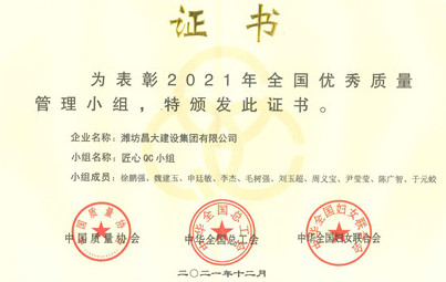由集團(tuán)機(jī)施公司匠心QC小組編寫的成果《施工升降機(jī)新型電纜臂架的研制》,經(jīng)初賽、復(fù)賽和決賽,在榮獲特等獎(jiǎng)后被推薦至中國質(zhì)量協(xié)會(huì)代表建筑行業(yè)作進(jìn)一步的競賽交流,該匠心QC小組也被中國質(zhì)量協(xié)會(huì)、中華全國總工會(huì)、中華全國婦女聯(lián)合會(huì)評(píng)選為2021年全國優(yōu)秀質(zhì)量管理小組,代表了建筑行業(yè)質(zhì)量管理小組活動(dòng)的最高水平。