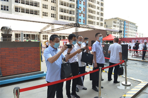 集團總工程師房海、質量技術部總經理劉文、二建公司總經理李建成參加觀摩活動。各縣市區住建局分管局長、建筑業發展中心主任、施工企業代表等200余人參加了上午的觀摩活動。