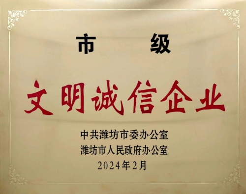 來(lái)自濰坊市精神文明建設(shè)委員會(huì)消息,集團(tuán)公司榮獲2023年度“濰坊市文明誠(chéng)信企業(yè)”榮譽(yù)。同時(shí)順利通過集團(tuán)公司市級(jí)文明單位年度(2023年度)復(fù)查。