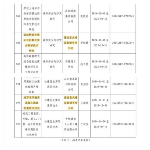 近日,山東省住房和城鄉(xiāng)建設(shè)廳下發(fā)了《關(guān)于公布2024年度山東省住房城鄉(xiāng)建設(shè)科技計(jì)劃項(xiàng)目的通知》,集團(tuán)公司申報(bào)的研究課題“鋼結(jié)構(gòu)高空作業(yè)可拆卸式安全防護(hù)技術(shù)研發(fā)”和“地下車庫鋼屑混凝土地面抗裂技術(shù)研究”成功入選,這是集團(tuán)公司首次獲批立項(xiàng)該科技計(jì)劃項(xiàng)目。另據(jù)悉,本年度濰坊市僅有4項(xiàng)課題獲評(píng)立項(xiàng),其中集團(tuán)公司占2項(xiàng)。