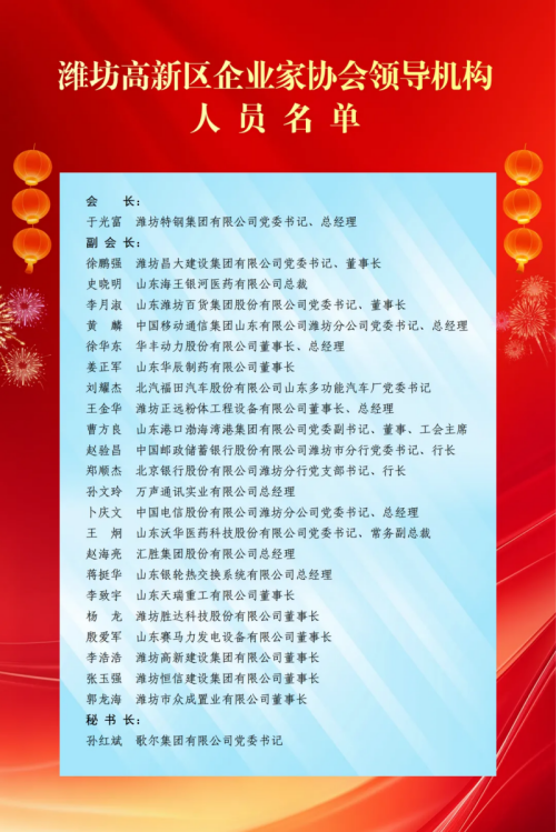濰坊高新區(qū)企業(yè)家協(xié)會成立 徐鵬強董事長當選副會長