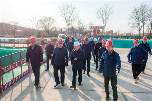 在項目建設現場,視察組重點察看了主體封頂后的施工銜接情況,詳細了解裝飾、安裝等后續工程籌備進展。