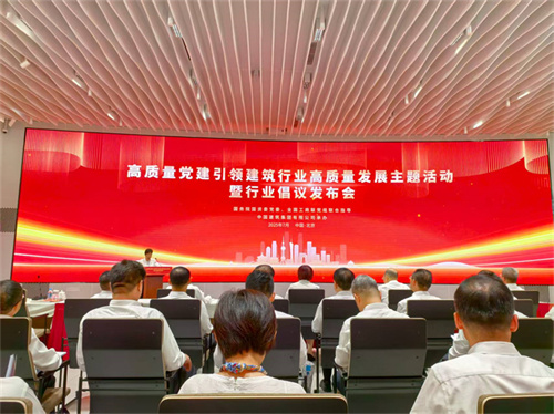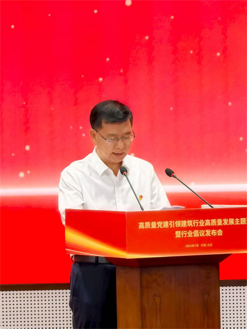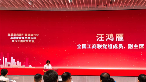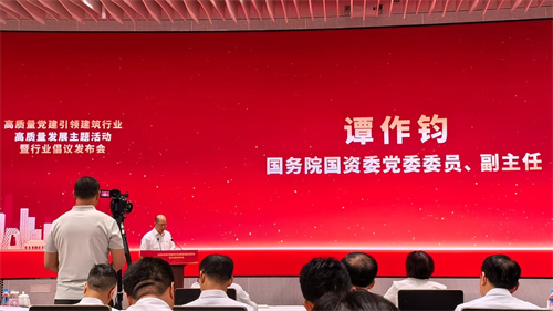 2025年7月7日下午,全國高質量黨建引領建筑行業高質量發展主題活動暨行業倡議書發布會在北京中建財富國際中心召開,國務院國資委黨委委員、副主任譚作鈞,全國工商聯黨組成員、副主席汪鴻雁出席會議并發表重要講話。集團黨委書記、董事長徐鵬強出席會議并作表態發言。